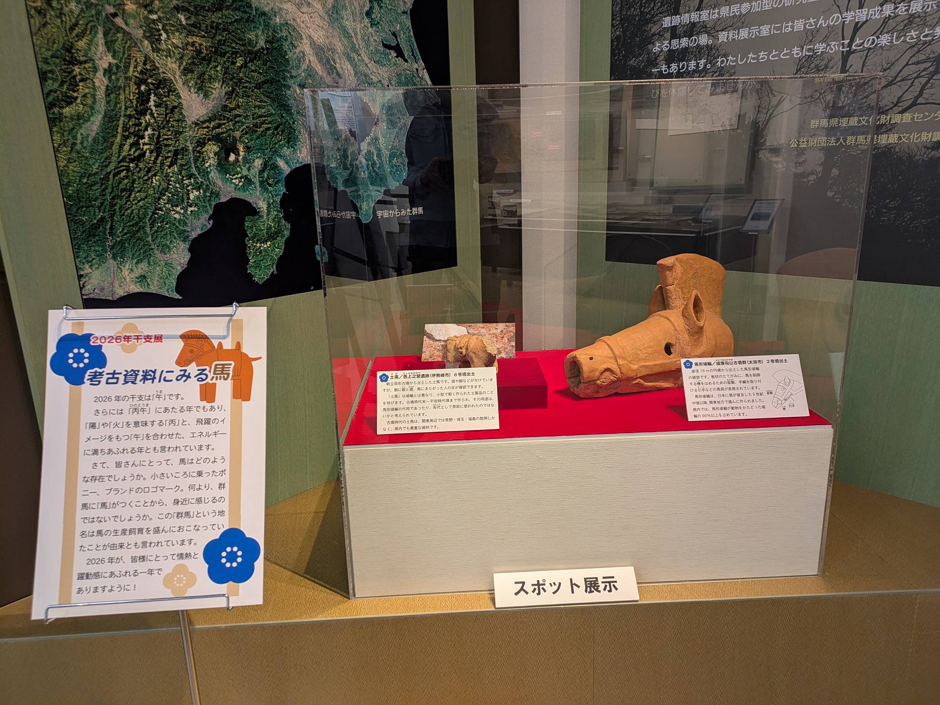 午年にちなんだ小展示。 土馬が珍品。 鞍を置いて、人が載る。 輪鐙に置いた足も、しっかりリアルな造形。 西上之宮6号墳、帆立貝式墳から···